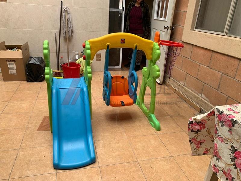 En planta baja tiene 2 recamaras, 1 baño completo, sala, comedor, cocina, desayunador, área de lavado y un patio muy amplio.